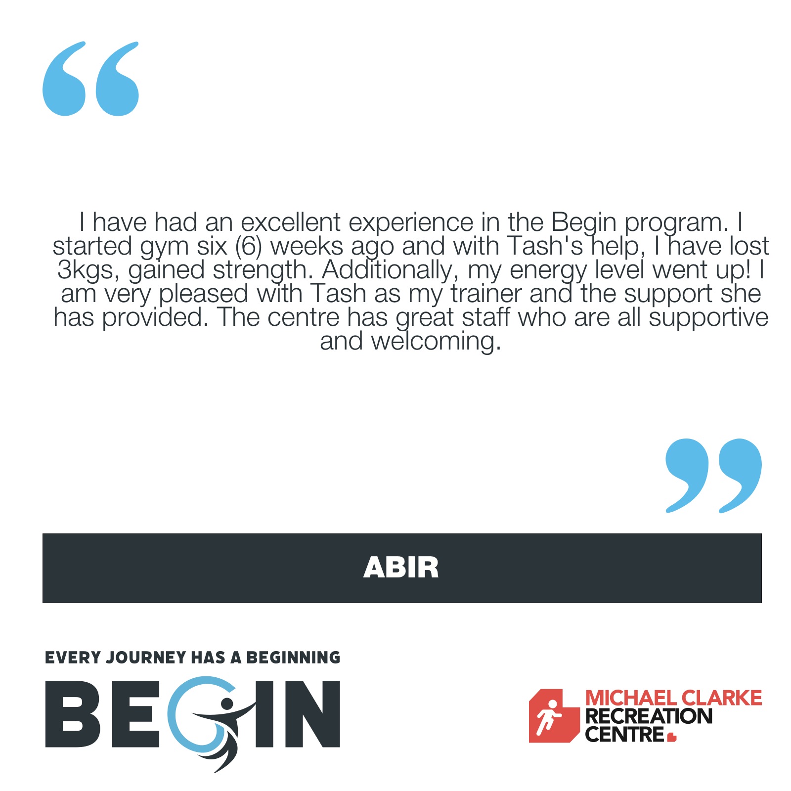 All new members receive three (3) sessions in your first four weeks of joining our club. You'll meet with one of our highly qualified health professionals who will take you through the Begin program.